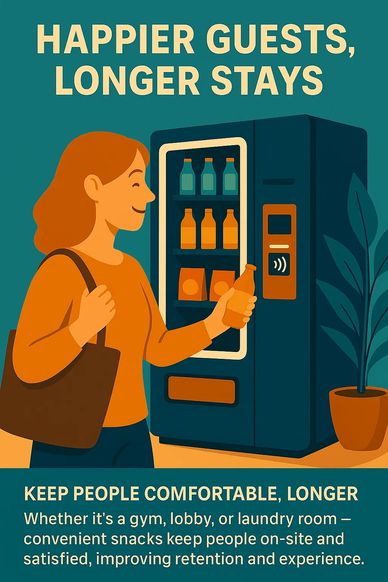 SnaxaVendings modern, AI-powered snack cabinets elevate your space, delight your guests, and take zero effort to manage.